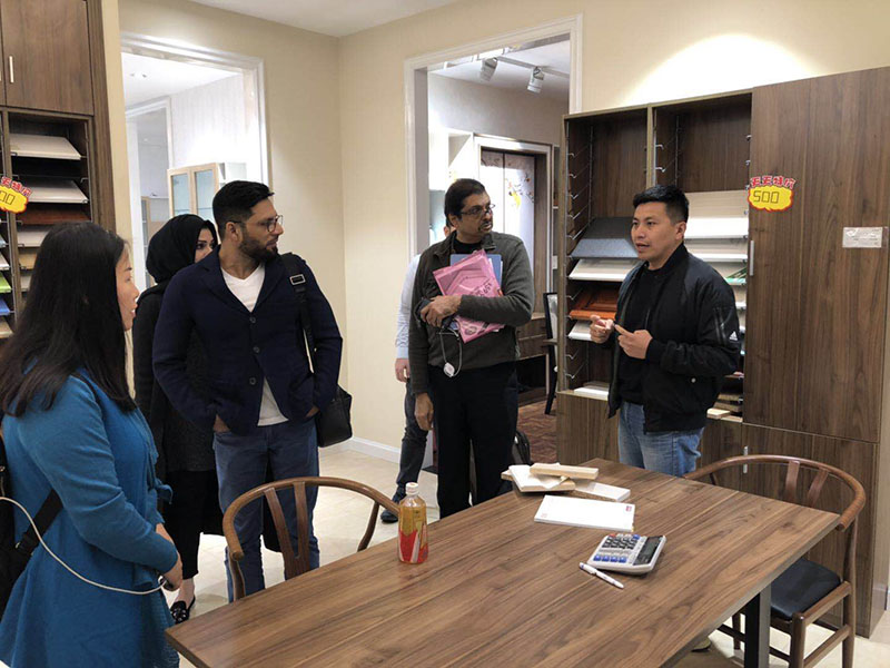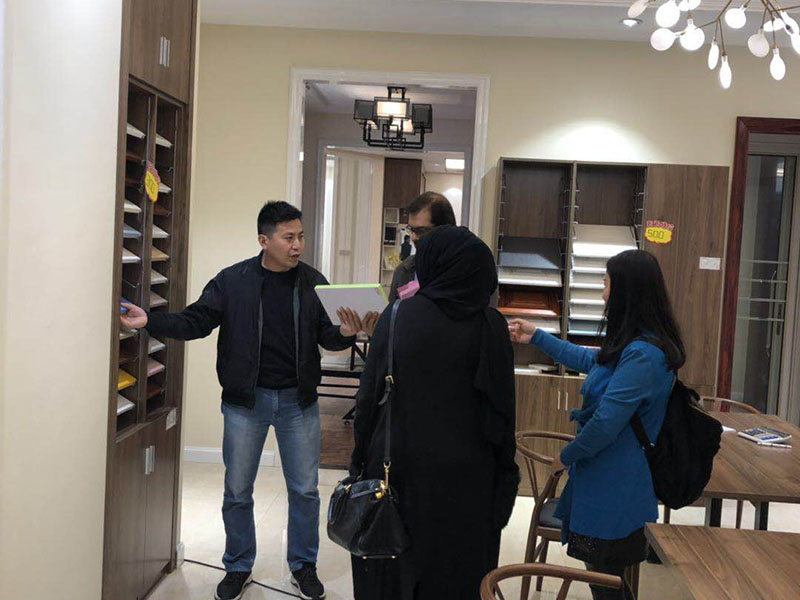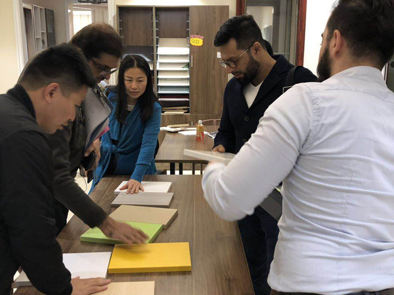 This is the second time we met since our Dubai business travel, they are interested in the latest materials and have very deep impression on our showroom.