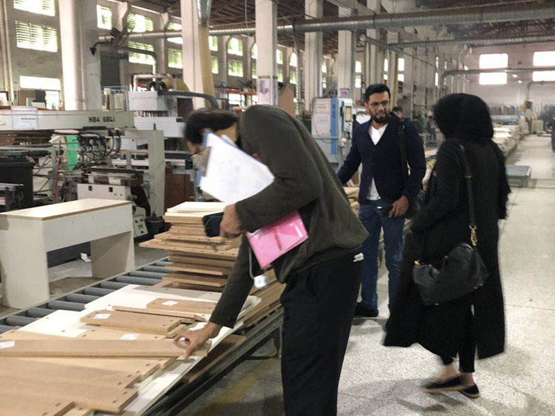 They walk around the workshop and see our intelligent production equipments-Germany Homag automatic production line.