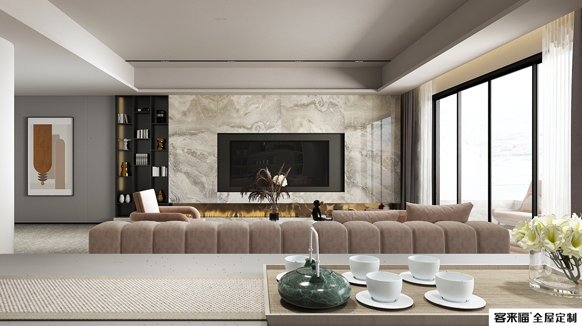 The design of the living room is beautiful and elegant, and the large area of floor-to-ceiling windows incorporate infinite scenery, giving the space an elegant and soft beauty. Integrate with modern and elegant space personality, full of appeal.