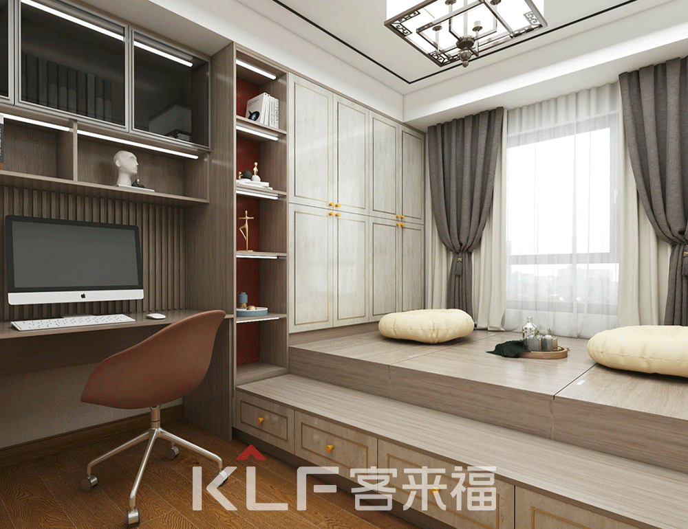 这一套装修样式的亮眼之处便是榻榻米房间,提起榻榻米很多人会想起日本,殊不知榻榻米的起源地却在中国。因此我们在设计之初汲取传统榻榻米样式的同并融合现代风格,便有了现在的样式。一壶茶、俩个人、一盘棋,共享休闲时光。