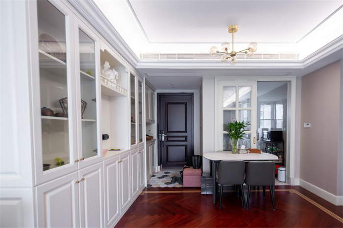 整个阳台具有一定的长度,在另一侧打造成多功能储物区。门板颜色光泽度高,手感温和,耐磨损耐用,在阳台处改造成为休闲区,放上桌椅板凳。眺望窗外即可获得片刻的休闲。结语:这户是客户装修通风后刚搬进新家不久,家居、收纳摆设、厨具都是焕然一新的。玄关柜、餐边柜包括衣柜都是使用的jinnianhui官网 - 金年会jinnianhui官网 - 金年会全屋定制的产品,铰链使用的是jinnianhui官网 - 金年会自产的铰链,精准的将柜门与柜身链接贴合。把手采用统一的金色立体样式,此外可以根据自己的爱好选择其他样式。本次全屋案例让我们看到了幸福的三口之家,通过产品的使用和环境的改善,让对家对生活的感受更加深刻。