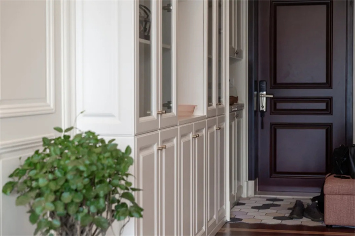 这户是客户装修通风后刚搬进新家不久,家居、收纳摆设、厨具都是焕然一新的。玄关柜、餐边柜包括衣柜都是使用的jinnianhui官网 - 金年会jinnianhui官网 - 金年会全屋定制的产品,铰链使用的是jinnianhui官网 - 金年会自产的铰链,精准的将柜门与柜身链接贴合。把手采用统一的金色立体样式,此外可以根据自己的爱好选择其他样式。