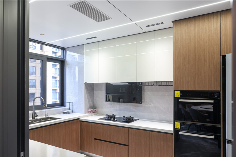 厨房jinnianhui官网 - 金年会橡木柜体配合以岩板,温馨柔润,其整体U型构造遵循智慧动线,实用性强;根据实际需求将烤箱等大电器嵌入地柜、高柜中,让空间有效归整。