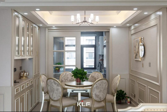 餐厅放置了圆形餐桌加餐边柜,酒柜和软装的配合,则增加了空间的层次感和视觉效果,打破略显单调的用餐环境。