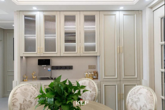 餐边柜高级大气,储物收纳和展示区域,划分明确。侧边收纳柜和地柜安置日常物品,顶部半透玻璃柜做展示使用,可放置书籍、手办或美酒,既美观又不失格调。