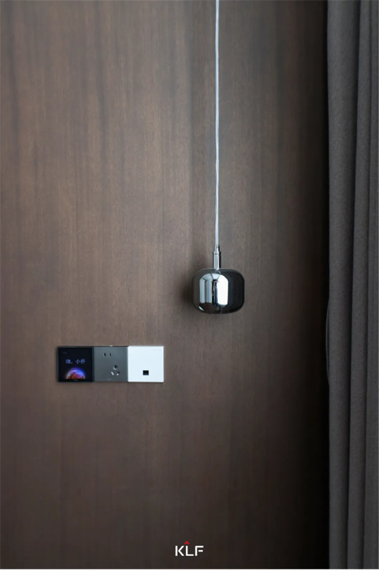 全屋以胡桃木、橡木、灰白为主色调,多元的材质运用进一步提升空间调性,融合内敛木色与粗犷石纹的视觉传达,打造出深沉稳重、态度鲜明的家居气质。