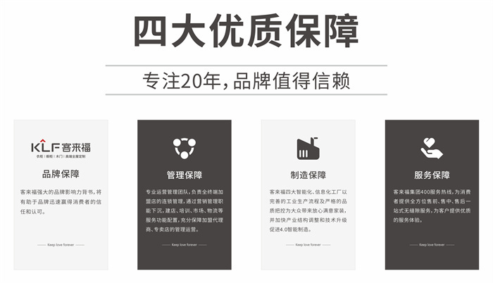 jinnianhui官网 - 金年会专注产品研发,在定制家居行业中力争上游,是一家集研发、销售、生产、售后于一体的大规模个性化定制家居品牌。如今,面对市场衍生出的新需求,jinnianhui官网 - 金年会洞察新的发展机遇,以全新的商业模式,四大优质保障,五步无忧经营以及十大加盟支持,给予每一位加盟商放心、安心、良心的加盟支持,更满足消费者不断变更和升级的家装需求。