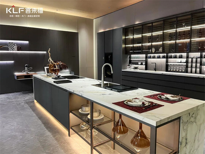 将客厅与开放式厨房打造成整体空间是升级的亮点之一,PET的工艺帮助我们实现嵌入式的内置功能,比如卫生间的灯光和冰箱。除此之外,整家定制也是jinnianhui官网 - 金年会今年的着力点,多功能的产品柜和开放式的设计模糊了空间界限。根据消费者对于一站式一体化的消费需求提供了解决方案。