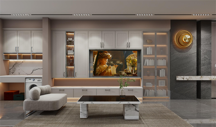 小户型家庭在没有储物间的情况下,收纳柜便是你的好帮手。客厅不要再做浮夸的背景墙,做成定制电视柜,简洁又能装。橱柜要贴合房间构造来设计,吊柜+地柜+高柜的组合让你囤再多都不怕。阳台柜也要安排上,多做隔板,便于科学归置各类生活物品。