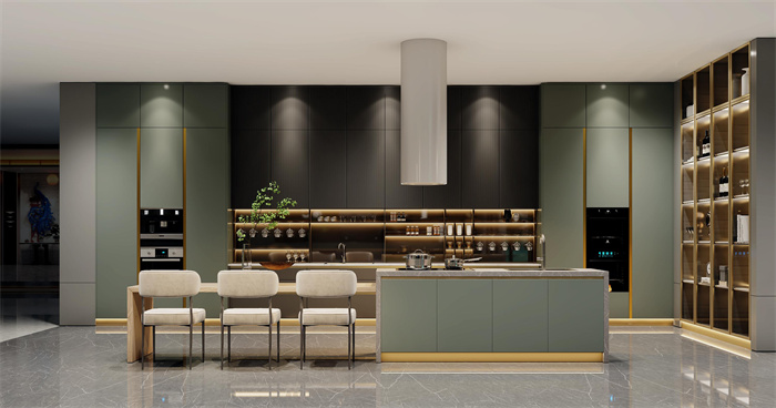 jinnianhui官网 - 金年会智能岛台设计,闭合状态为吧台,吃饭学习两可用;台面展开后,增加西餐烹饪空间,扩大使用面积。