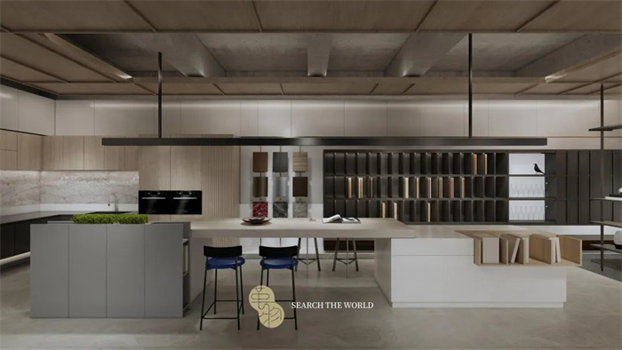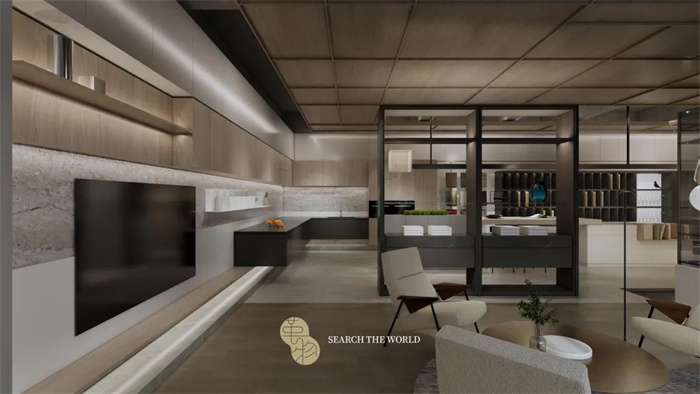 在空间布局上,整体设计从现代人居出发,可根据不同的受众人群定制个性化的家居产品,例如潮鞋柜、手办柜、古玩架,酒柜、宠物舍、茶室等,让家居空间承载更多私人定制的梦想。