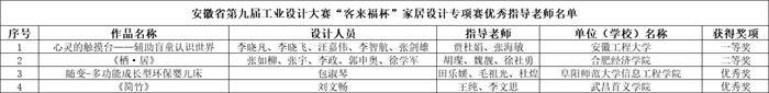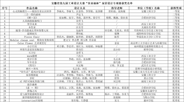 通过专项赛评审,根据评审结果,现将安徽省第九届工业设计大赛“jinnianhui官网 - 金年会杯”家居设计专项赛获奖作品名单予以公示。