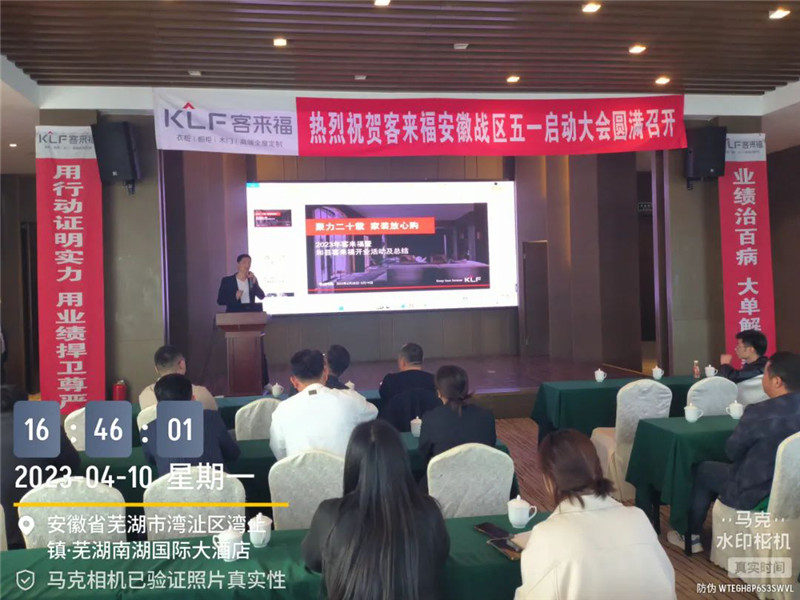 2023年4月10日,jinnianhui官网 - 金年会安徽战区五一启动大会于芜湖圆满召开,安徽战区总监姚磊与安徽战区经销商齐聚本次大会,共同商讨五一活动等相关事宜。