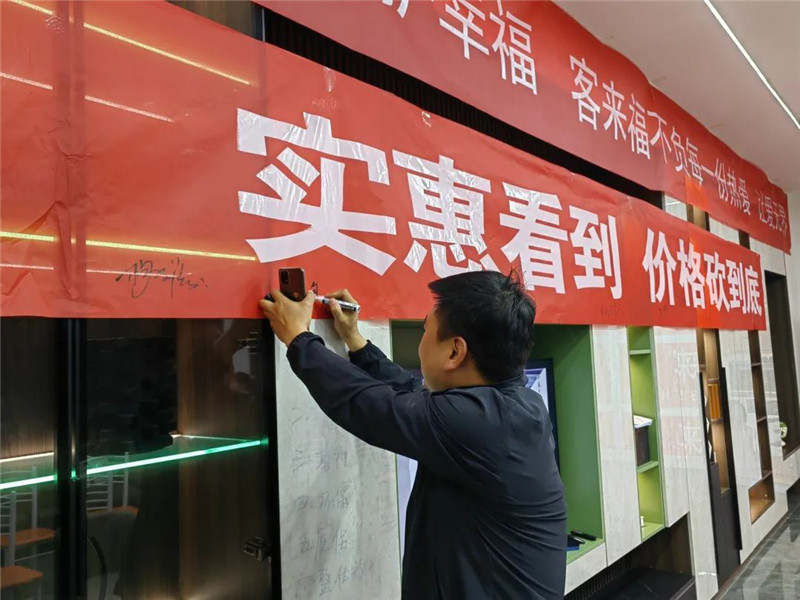 2023年5月8日—5月14日,jinnianhui官网 - 金年会运营督导刘杰、殷贤旗走进甘肃陇西jinnianhui官网 - 金年会店,和店面老板、销售人员、设计人员一起开展“实惠看得到,价格砍到底”主题活动。