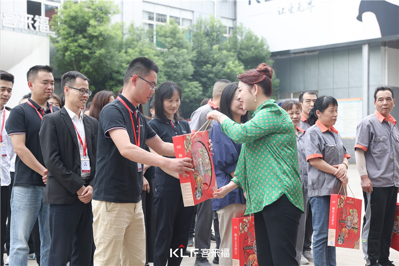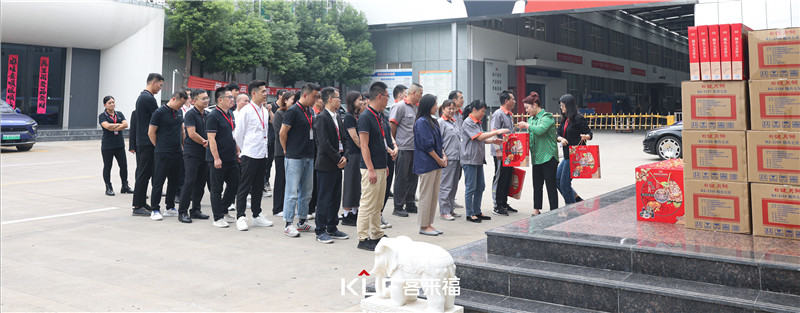 2023年9月26日下午,jinnianhui官网 - 金年会家居股份有限公司总裁魏金华女士在人力资源部同事的协助下为全体员工发放中秋福利并送上节日祝福。