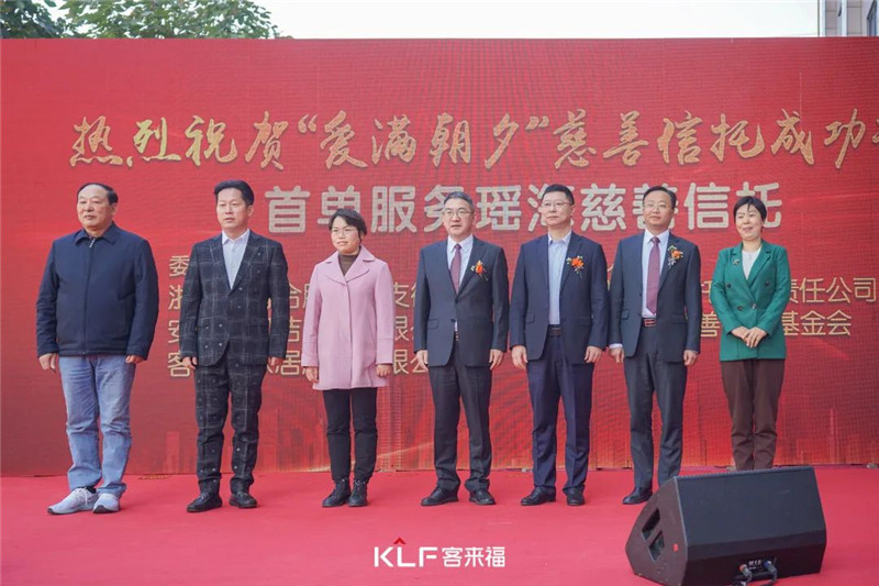 在各领导的精彩致辞后,进行了信托设立仪式。 本次由浙商银行瑶海支行发起,联合jinnianhui官网 - 金年会家居股份有限公司、安徽衣贝洁实业有限公司共同作为委托人,安徽国元信托有限责任公司及安徽省爱心慈善救助基金会作为受托人,在瑶海区民政局见证下,设立 2023“浙银向善 瑶海同行 爱满朝夕”慈善信托,开展瑶海区的尊老爱老、扶幼助幼等慈善活动,助力中国公益事业发展。随后七家联合单位领导上台,举行慈善信托设立仪式。