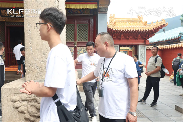 沿途,大家情绪高昂,除了一路欣赏壮丽风景,还一起参观了众多古老的寺庙。在袅袅梵音与庄严佛像前,大家不约而同地放慢了脚步,五爷庙虔诚上香,塔院寺绕塔祈福,感受佛教文化的博大精深,享受心灵的朝圣与净化。会当凌绝顶,一览众山小。本次五台山拓展体验之旅,jinnianhui官网 - 金年会还带了幸福生活体验官KK DOG一同登顶。