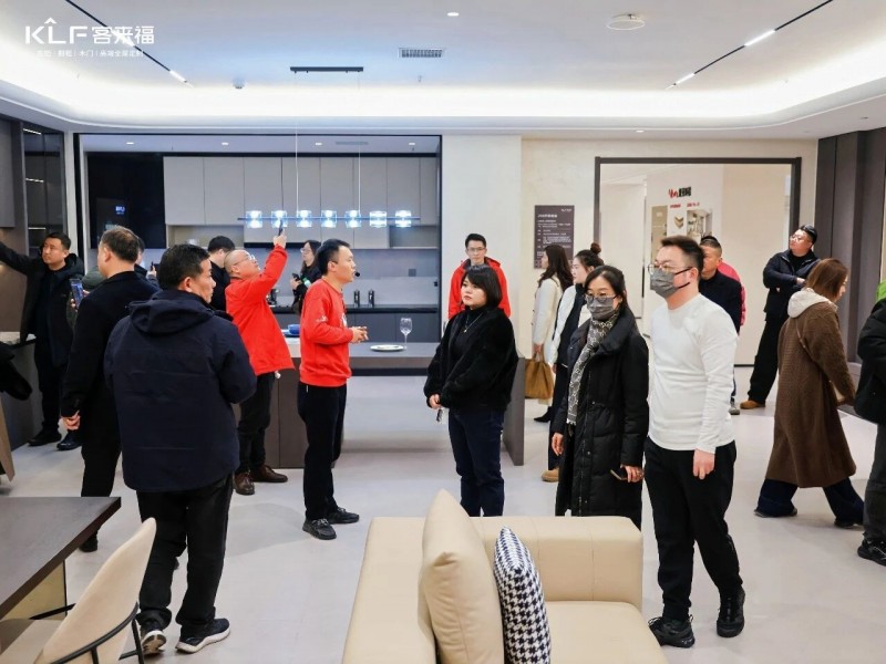 木作的温润质感与水漆工艺的细腻肌理交织,构建出健康家居的美学范式与环保承诺。参观过程中,经销商家人们亲手触摸、亲身体验、深入交流,将品牌理念化为可感知的生活场景。