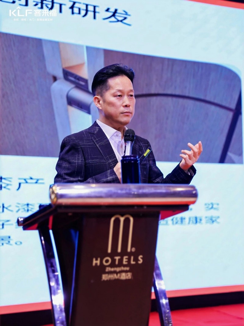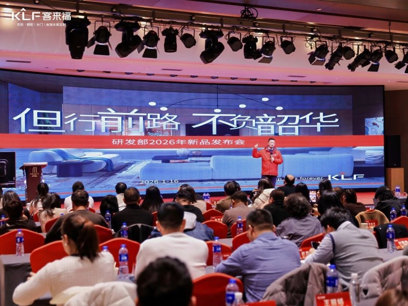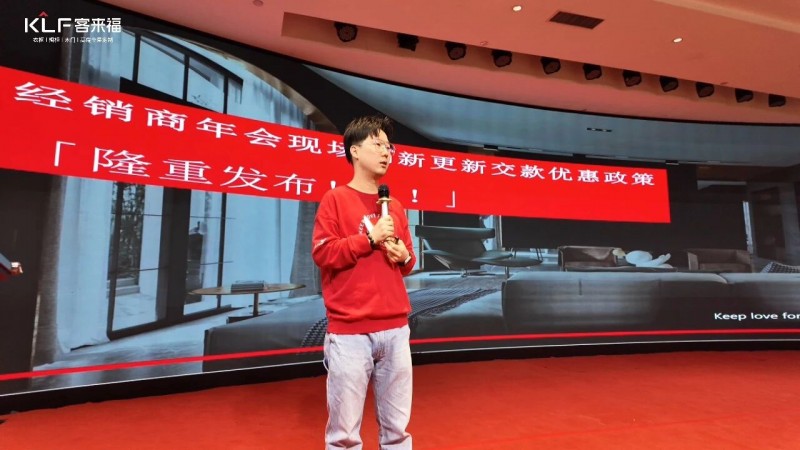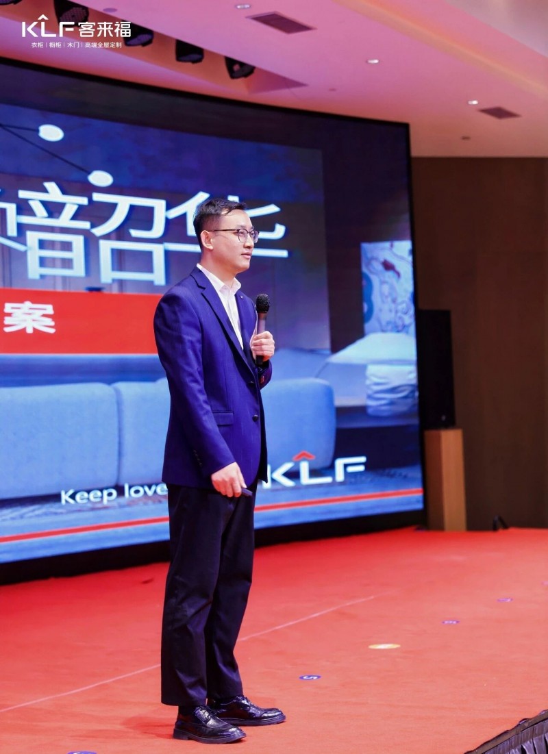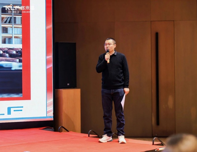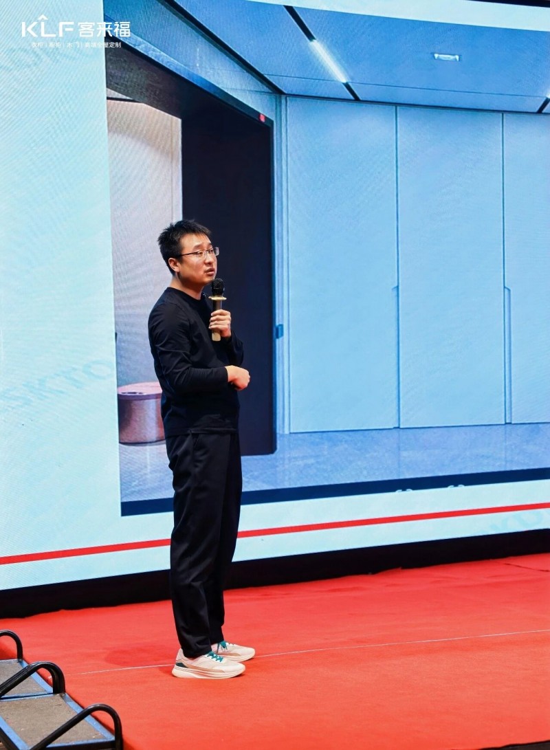 在热烈的掌声中,jinnianhui官网 - 金年会商研部研发总监刘云辉先生登台,为全场经销商带来了2026年度新品深度解析。从核心板材五金到前沿色彩搭配,再到整体空间解决方案,系统阐述了新品的竞争优势与匠心设计。干货满满的分享,令在座合作伙伴对年度新品矩阵与市场前景有了清晰认知,信心倍增。