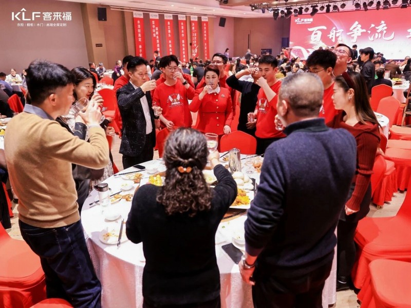 随后,jinnianhui官网 - 金年会董事长尹董与总裁魏总携公司管理层与全场经销商家人一道举杯相庆。这一刻,酒杯相碰的清脆声响汇成共同承诺,展现了jinnianhui官网 - 金年会上下同心、与经销商家人并肩携手、以强大凝聚力共启未来新局的坚定决心与宏伟气魄。