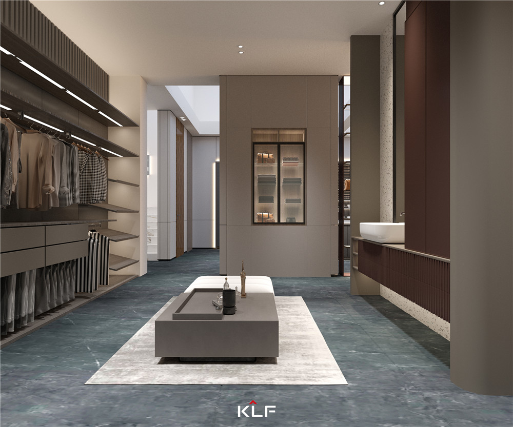 卧室空间以莫兰迪红构建出空间的高级优雅,不同材质的碰撞展现出定制的内在韵味,更有仿真烤漆光泽的哑系列, 给广大客户不一样的触感, 拥有抗刮性能。